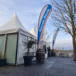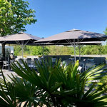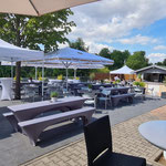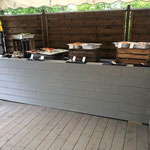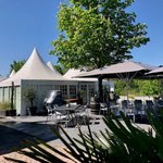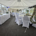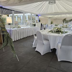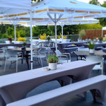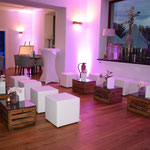 Direkt anliegend besticht die große edle Außenterrasse, die sehr gut für Sektempfänge und anschließendem Relaxen auf Sitzsäcken oder Lounge-Möbeln einlädt.