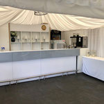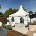 In unseren Sommerpavillon mit Panoramablick, edlem Steinboden und moderner LED-Bar, können Feiern in der Größe von min. 50 Gästen bis zu 120 Gästen durchgeführt werden. Durch die Möglichkeit den Sommerpavillon zu beheizen, können auch Feiern in den kälteren Monaten durchgeführt werden.