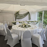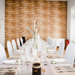 Im neu gestalteten Innenbereich, mit massiven Holzböden und Stuckelementen, können Feiern in der Größe von min. 30 Gästen bis zu 60 Gästen stilvoll umgesetzt werden.